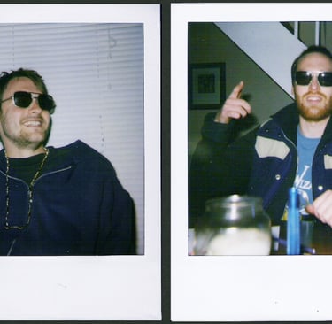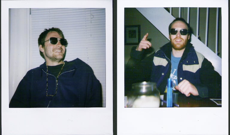 There was a moment in time when my mind changed. i stopped saying things like 'i'm going to make a movie about this' or 'my song would sound like this' and just got out my tape recorder and started bashing out a song or 10 in an afternoon. or would get my video camera and actually make movies. These polaroids represent that moment in time. This is me (on the right) before i got my bandages. and my buddy/collaborator on many projects (on the left).